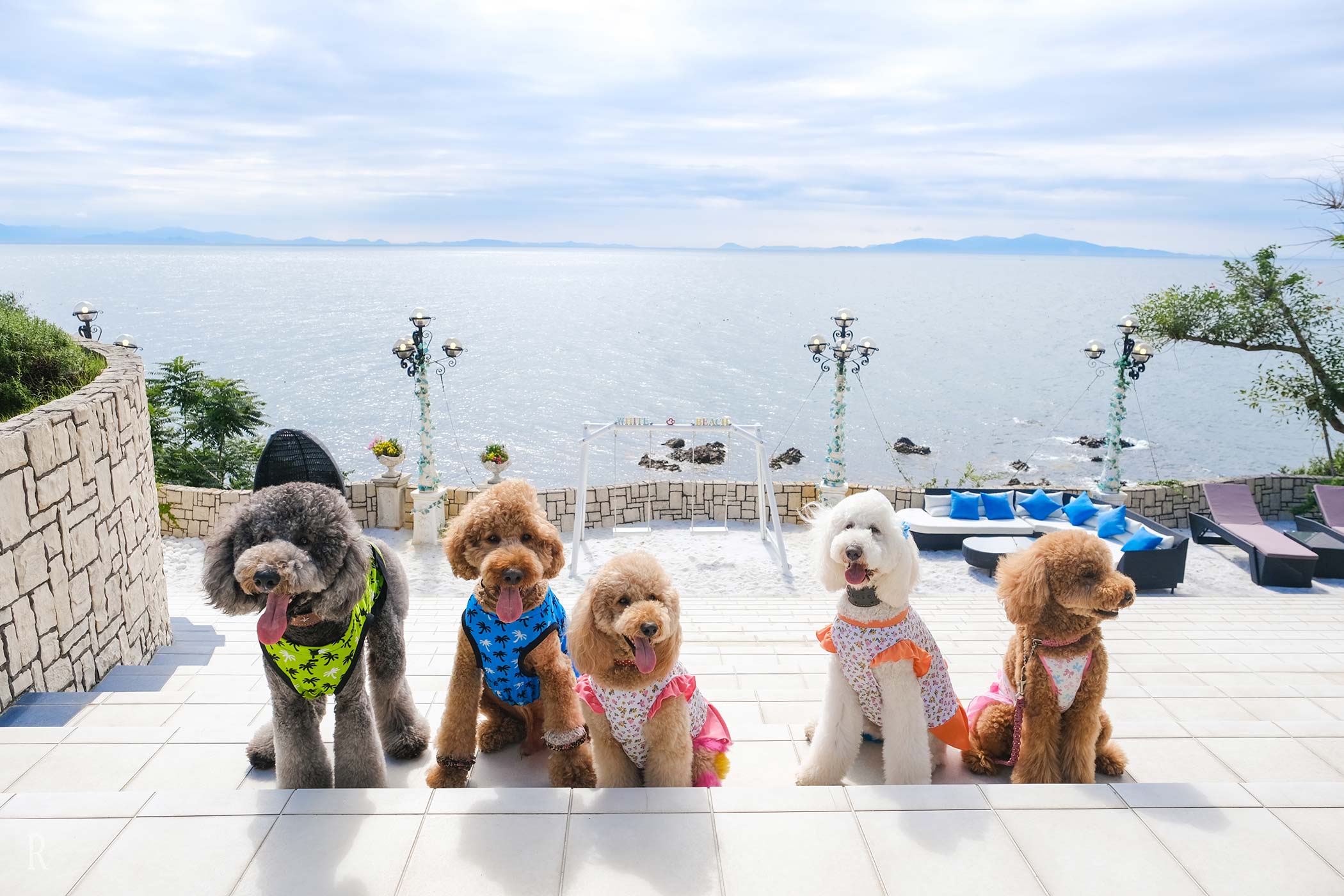 愛犬と泊まれる3棟のコテージは、それぞれ異なるインテリアが施された個性豊かな空間。目の前に広がる海と、心奪われる夕日の景色が、非日常感を一層引き立てます。