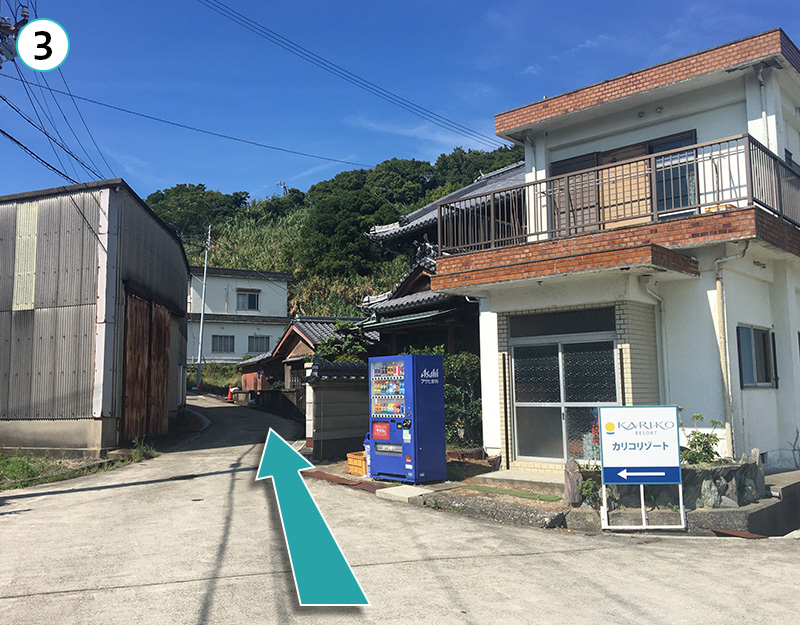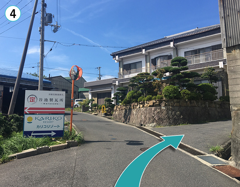 津井港手前。 津井の八大龍王宮を越えて20M先を左折。